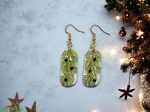 362. Fenyő mintás fülbevaló piros strasszokkal