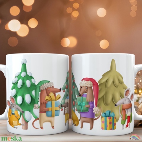 Egeres-kutyás-fenyőfás karácsonyi bögre mókás rajzokkal. 3 dl-es kerámia bögre nem csak gyerekeknek.