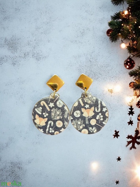 377. Karácsonyi mintás, rókás bedugós fülbevaló