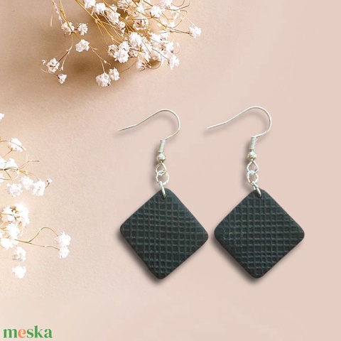 383. Négyzetalakú alakú fekete, anyagában mintás fülbevaló