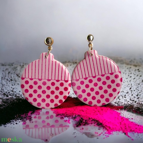 401. Rózsaszín alapon, sötétrózsaszín mintás fülbevaló