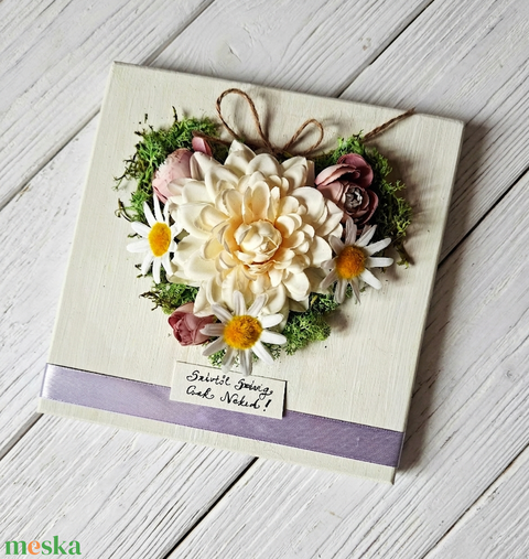Szívtől Szívig- egyedi, virágszíves kép zuzmóval, ajándékba, ünnepi alkalomra, anyák napja, ballagás, pedagógusnapra,