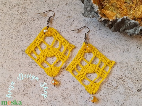 Kézműves horgolt csipke fülbevaló (Sabine - Pitypang sárga szín)