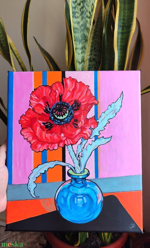 Festmény Pipacs Kék váza csendélet falikép dekoráció