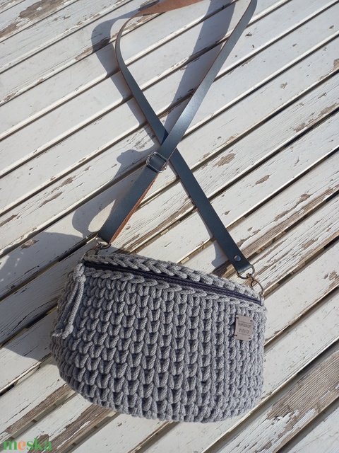 Beton/Szürke horgolt övtáska - bőr táskapánttal és béléssel