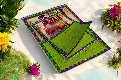 2026-os A3-as falinaptár zöld -lila háromszöges