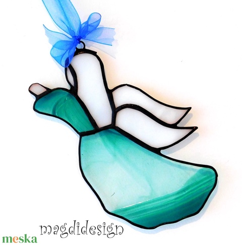 - Anyaga: spektrum üveg, organza, rézfólia, forrasztó ón, patina
