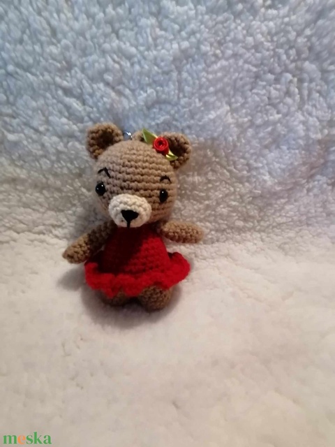 Mackólány piros ruhában - kulcstartó vagy táskadísz