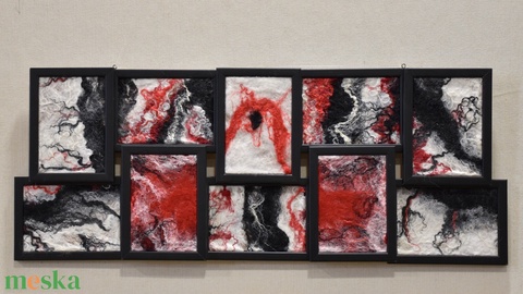 Fekete-Fehér-Piros - Nemezelt gyapjú falikép