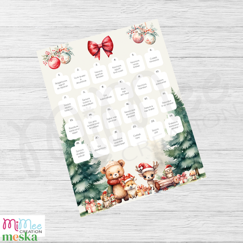 Erdei állatos adventi élmény naptár gyerekeknek, felnőtteknek, családoknak