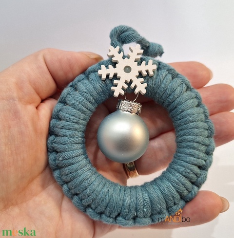 Hópelyhes gömbös makramé karácsonyfadísz szett