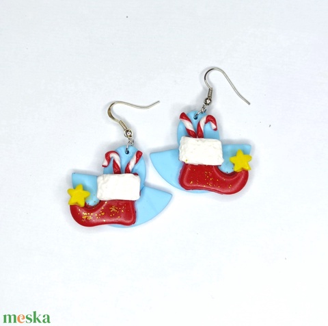 Karácsonyi fülbevaló, manócsizmákkal díszítve