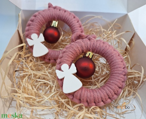 Angyalkás gömbös makramé karácsonyfadísz