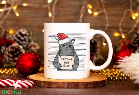 Christmas tree killer macskás bögre / Karácsonyfa gyilkos macskás bögre