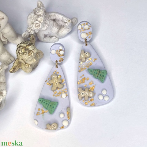 Pasztell színekkel készült karácsonyi figurákkal díszített fülbevaló