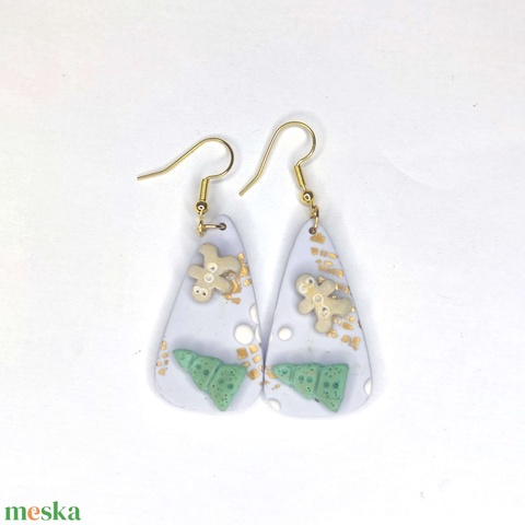 Pasztell színekkel készült karácsonyi figurákkal díszített fülbevaló