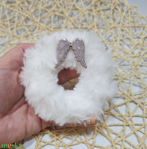 Pihepuha bolyhos karácsonyfadísz angyalszárnnyal