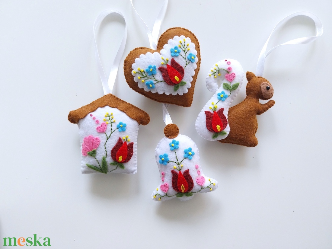 Kézzel varrot/hímzett filc Karácsonyi 4 db-os szett Kalocsai mintával