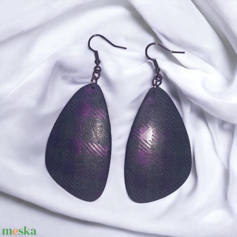 456. Szürke alapon lila kockás kagyló alakú fülbevaló