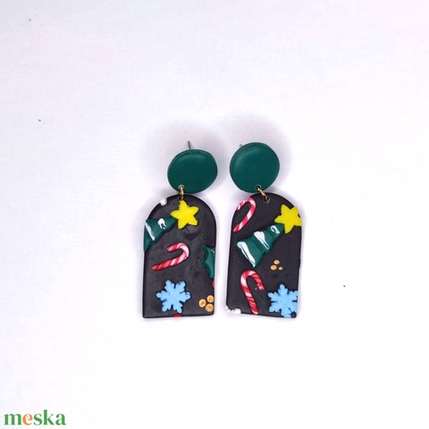 Karácsonyi motívumokkal díszített fekete fülbevaló