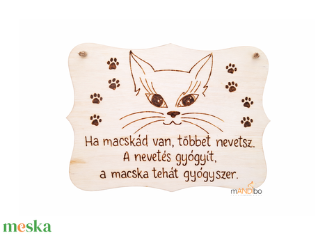 Vicces macskás kopogtató - pirogravírozott képecske