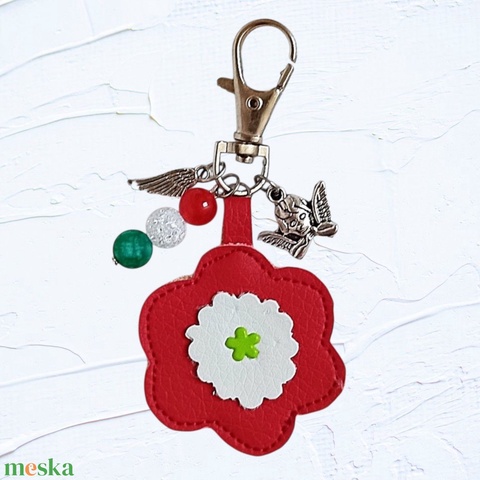 Szerencsehozó kulcstartó, táskadísz ásványgyöngyökkel - trikolor virág II.