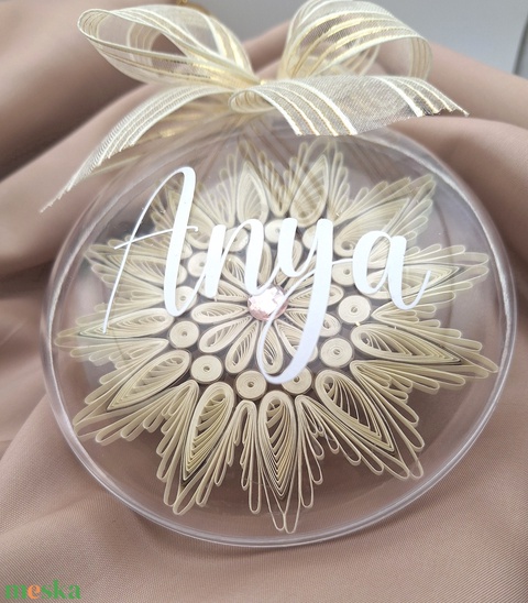 Karácsonyfadísz, egyedi, névre szóló felirattal - gyöngyfehér