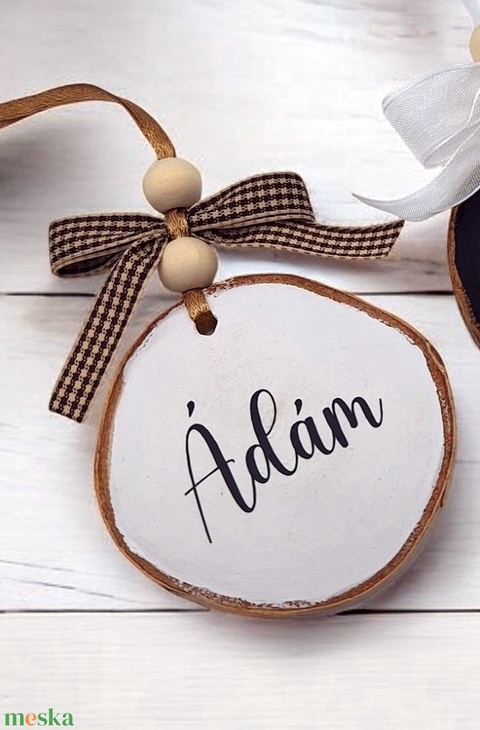 Karácsonyfadísz, egyedi, névre szóló felirattal - Fakorong (fehér)