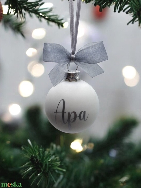 Karácsonyi üveggömb, egyedi, névre szóló felirattal - matt fehér, ezüst felirattal