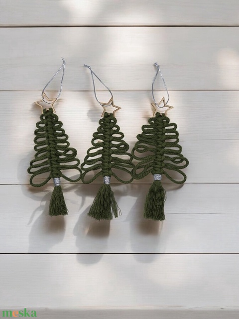 Makramé Karácsonyfadísz Szett – Zöld fenyők