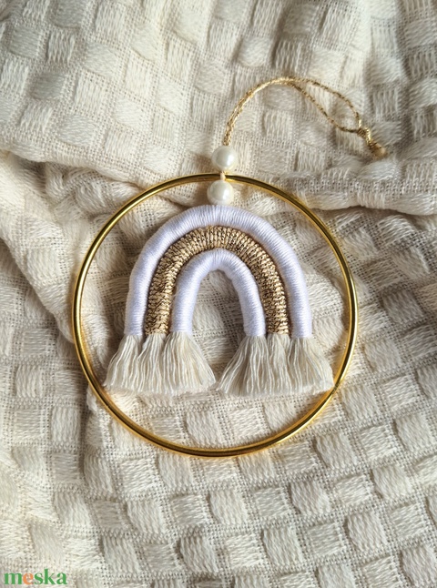 Makramé Karácsonyfadísz - szivárvány (arany)