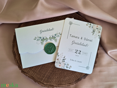 Esküvői pénzátadó boríték, nászajándék - zöld viaszpecsét