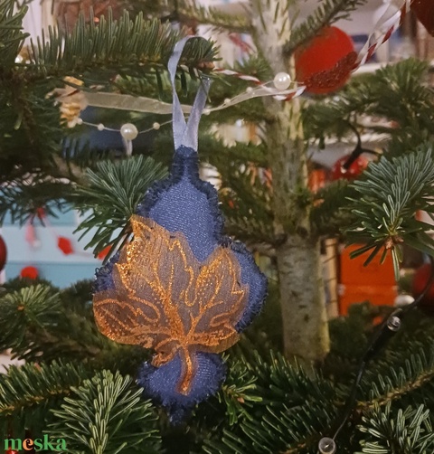 Kék-narancs textil karácsonyfadísz szett (6 db-os)