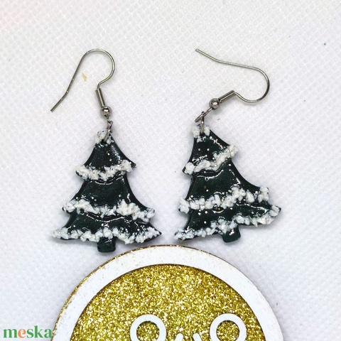 Csillogó, havas fenyőfa fülbevaló