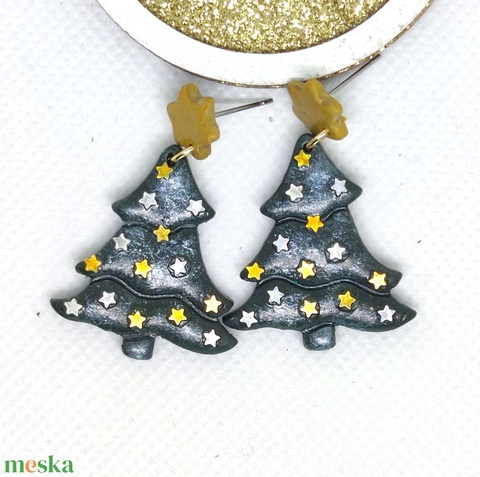 Csillagokkal díszített, fényes fenyőfa fülbevaló