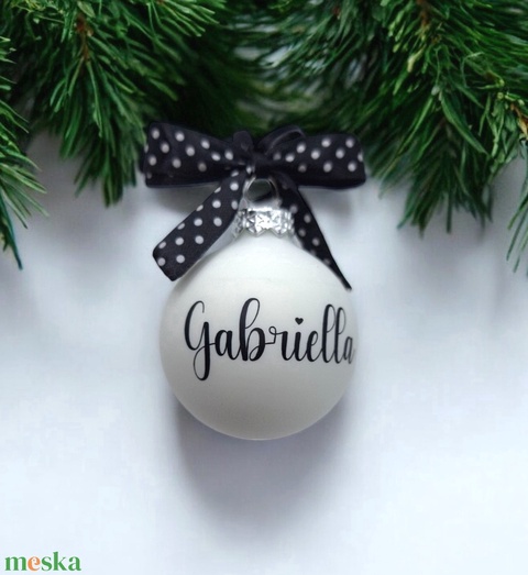 Karácsonyi üveggömb, egyedi, névre szóló felirattal - matt fehér, fekete felirattal