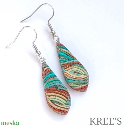 Türkiz-barna hullámok, ékszergyurma fülbevaló