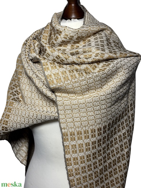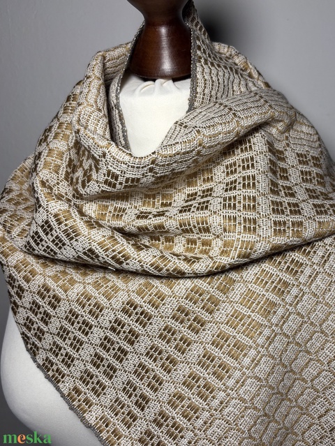 Kézzel szőtt Arany - Fehér Selyem Kendő