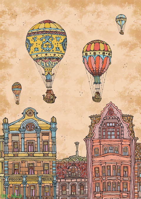 Léghajók a Fővám téren - szignózott művészi nyomat, A4