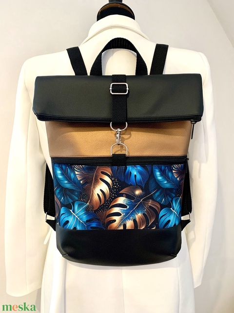 - Anyaga: pamutvászon, cipzár, heveder, fémszerelékek, vízálló szövet, textilbőr