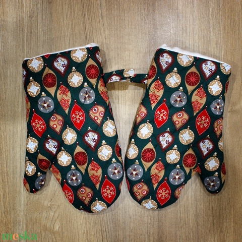 Natúr alapon fenyőágak edényfogó kesztyű