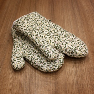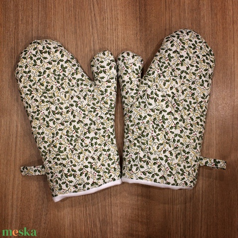 Vajszínű alapon apró karácsony mintás edényfogó kesztyű
