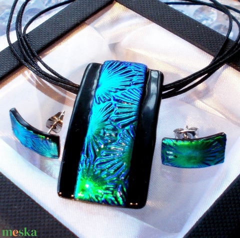 - Anyaga: ékszerüveg, ékszer szerelék, bőrszál, dichroic, üveg