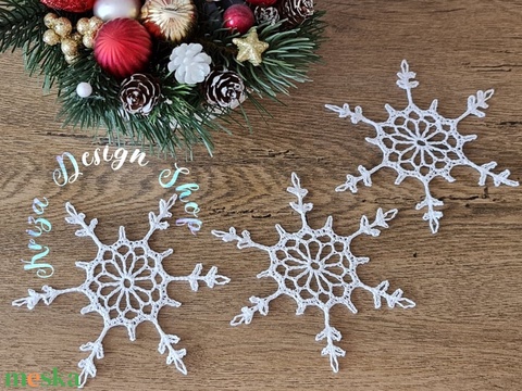 Kézműves horgolt csipke hópihe (hófehér) - 5.