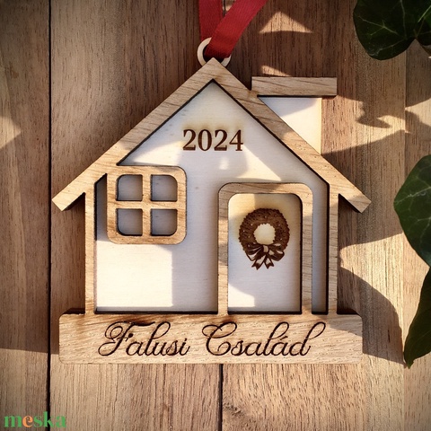 Karácsonyi házikó - karácsonyfadísz egyedi gravírozással