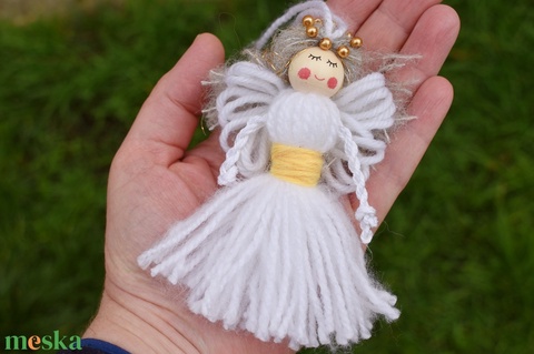 színes fonal angyalka karácsonyfadísz, egyedi ajándék