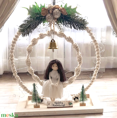 - Anyaga: makramé fonal, fa tál, műfenyő, karácsonyi pick, fa tábla, fa golyó