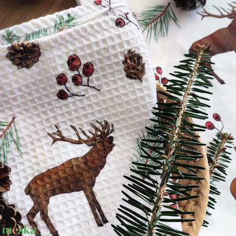 Kéztörlő kendő - Téli szarvasok - S
