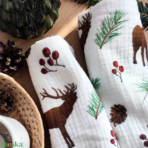 Babakendő, textilpelus - Téli szarvasok - S méret