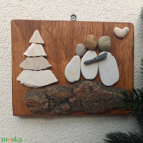 fa, lazúr, kavicsok, ragasztó, akasztó, fakéreg